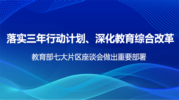 为落实纲要和三年行动计划、深化教育综合改革,4月24日以来,教育部先后召开京津冀片区、西北片区、东北片区、西南片区、华南片区、华东片区、中部片区共7场调研座谈会,实现对31个省份和新疆生产建设兵团的全覆盖。