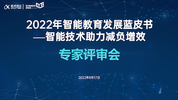 2022年8月17日下午,《2022智能教育发展蓝皮书——智能技术助力减负增效》专家评审会在科大讯飞总部合肥以线上线下相结合的方式举行。