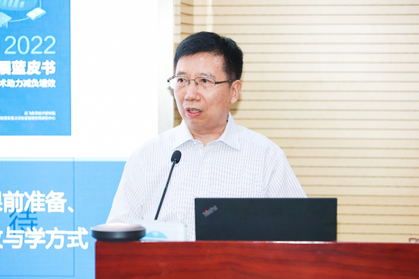 会上,讯飞教育技术研究院院长刘邦奇教授对《2022智能教育发展蓝皮书》作了系统介绍。他指出本年度蓝皮书的主题是“智能技术助力减负增效”,围绕“双减”政策落地要求,着眼教学提质增效、促进学生学业减负,针对课前准备、课堂教学、课后巩固等阶段中存在的低效重负问题,探索教与学方式变革,助力提升教学有效性的实践路径。同时,刘邦奇教授还表示,今年的蓝皮书从去年10月开始启动,到今年8月历经选题、撰写、统稿等环节,当前进入到校验评审阶段。