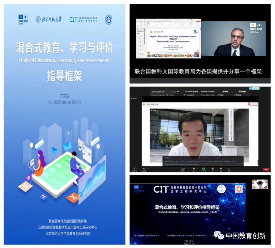 6月18日下午,第六届中国教育创新成果公益博览会卫星会议系列在线活动成功举办了“创新混合式教育助力教育数字化转型论坛”。本次论坛由联合国教科文组织国际教育局、北京师范大学中国教育创新研究院、互联网教育智能技术及应用国家工程研究中心共同主办。会议邀请了国内外教育信息化领域的知名专家学者,探讨了人工智能支持下的混合式教育如何推动教育创新发展,助力实现我国教育数字化转型。本次论坛还发布了《混合式教育、学习和评价指导框架(中文版)》。