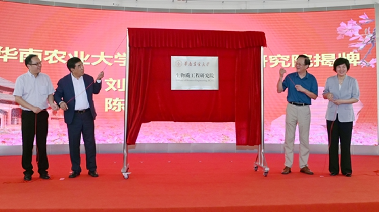 仪式上,刘雅红分别为谢克昌院士和陈勇院士颁发了“丁颖讲座教授”聘书和生物质工程研究院名誉院长聘书。随后,刘雅红、谢克昌、陈勇、仇荣亮共同为华南农业大学生物质工程研究院揭牌。