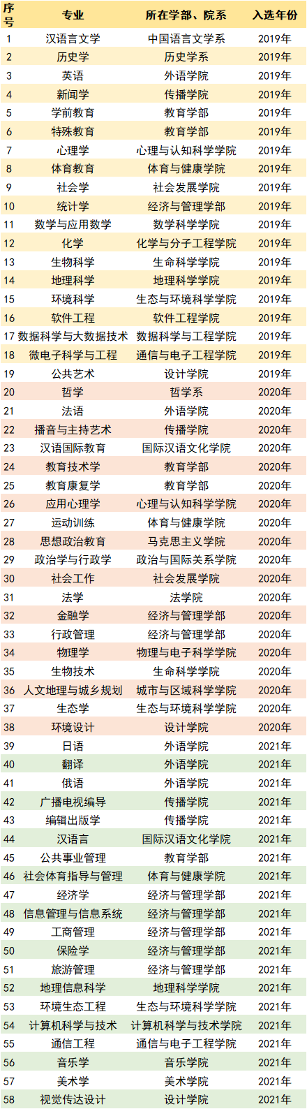 华东师大国家级一流本科专业建设点入选名单(58个)