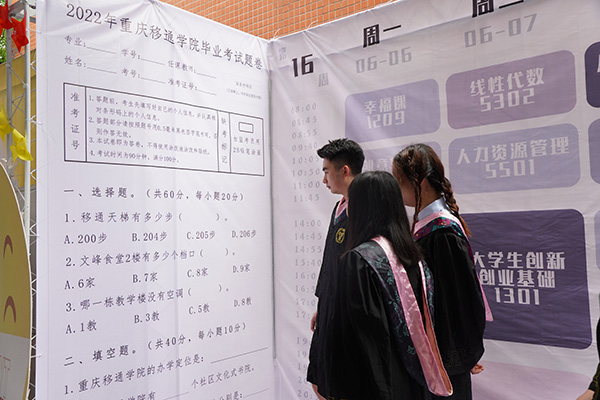别都书院以“四年完满账单”、“移通驿站”、“毕业考试答卷”、“亚洲最大烧烤架”、教师赠言、“毕业生微笑墙”等为主要创意点,以微观缩影的形式全方位呈现出移通学子在校生活、学习日常,带领毕业生重走四年青春路。