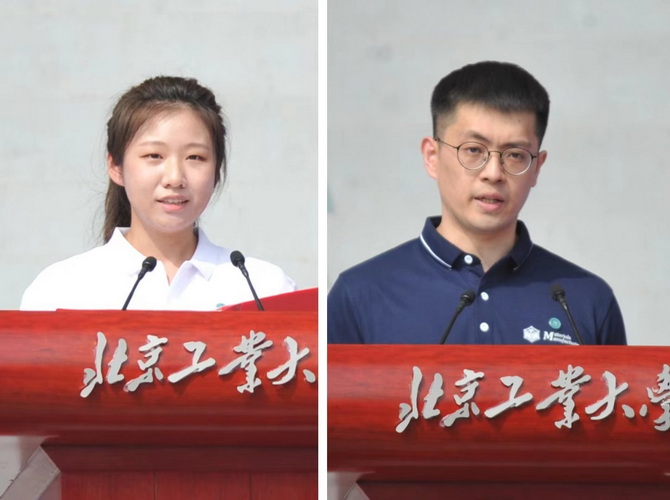 北京-都柏林国际学院本科生闫羽漩、材料与制造学部博士研究生周鑫华代表2022级新生分别发言,表示要坚定理想信念、响应时代呼唤、敢于追逐梦想,争当社会主义建设者和接班人,让青春在为党、为国家、为人民、为人类的不懈奋斗中绽放绚丽之花。