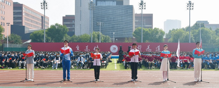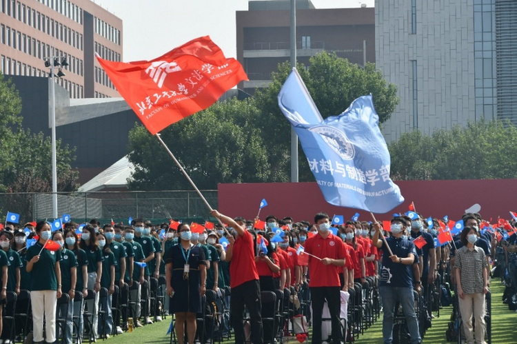 根据疫情防控要求,开学典礼采用线上线下结合的方式举行,7168名2022级新生分别在平乐园校区南田径场主会场、通州校区分会场以及通过观看视频直播等方式参加典礼。