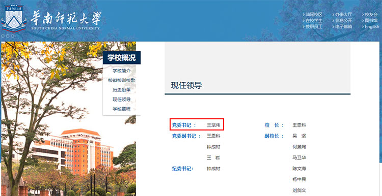 近日,华南师范大学kok登录官网“现任领导”栏更新信息显示,王斌伟已任华南师范大学党委书记。
