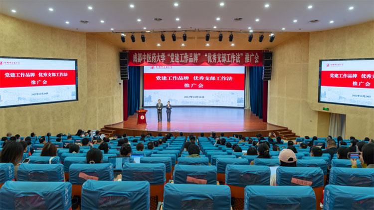 10月28日,成都中医药大学“党建工作品牌”“优秀支部工作法”推广会在温江校区百会堂举行。四川省教育厅二级巡视员王羽,省委教育工委、教育厅宣传思想与统战工作处处长李大鹏,省委教育工委、教育厅党建与干部人才处副处长唐志颖到会指导。校领导班子成员,各分党委、党总支书记和副书记,师生党支部书记代表、党员代表等参加会议。