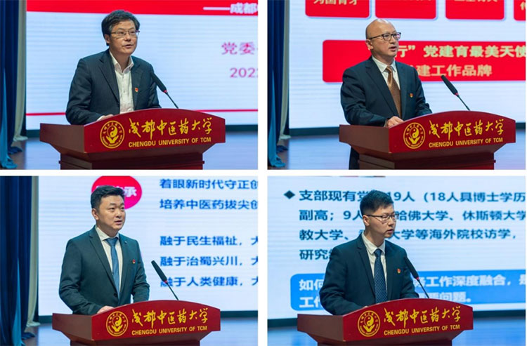 此次会议发布了学校党委获评全省高校党建工作品牌的“红润杏林”宣传片,获评全省高校“优秀支部工作法”的马克思主义学院教师第一党支部“望闻问切”宣传片,同时还展示了4个校级“党建工作品牌”和20个“优秀支部工作法”视频资料。临床医学院/附属医院党委、护理学院党委作“党建工作品牌”创建交流发言;针灸推拿学院博士党支部、药学院/现代中药产业院中药炮制与制剂系党支部作“优秀支部工作法”总结提炼交流发言。