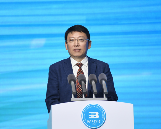 游钧对学校近年来的办学成果和为国家、首都经济社会发展作出的贡献表示肯定。他指出,党的二十大强调“教育、科技、人才是全面建设社会主义现代化国家的基础性、战略性支撑”,首次将教育、科技、人才“三位一体”统筹安排、一体部署,教育的基础性、战略性地位得到空前提高。要深刻领会党的二十大关于教育的新定位新部署新要求,深入思考并回答好“强国建设,教育何为?教育强国,首都何为?”等重大命题,进一步增强使命感、责任感,在新时代新征程上彰显新担当、展现新作为。举办本次活动是北工大贯彻落实党的二十大精神,实施科教兴国战略、人才强国战略、创新驱动发展战略的实际行动和重要举措,活动以“植根首都、科技报国”为主题,充分体现了学校潜心服务国家战略和首都发展的使命担当。他强调,北工大要进一步探索创新体制机制,统筹推进教育、科技、人才工作“三位一体”协同发展;充分发挥基础研究主力军作用,夯实科技自立自强根基;加快建设高水平研究型大学,以更大作为融入和服务国际科技创新中心建设。他表示,北京市委市政府将一如既往支持北工大建设发展,希望学校继续发扬光荣传统,不息为体、日新为道,奋力创造出无愧于新时代的新业绩,坚定走出一条扎根京华大地,具有首都意识、首善标准、首创精神、首发成果的中国特色高水平研究型大学圆梦之路,为全面建设社会主义现代化国家、实现中华民族伟大复兴作出新的更大贡献。