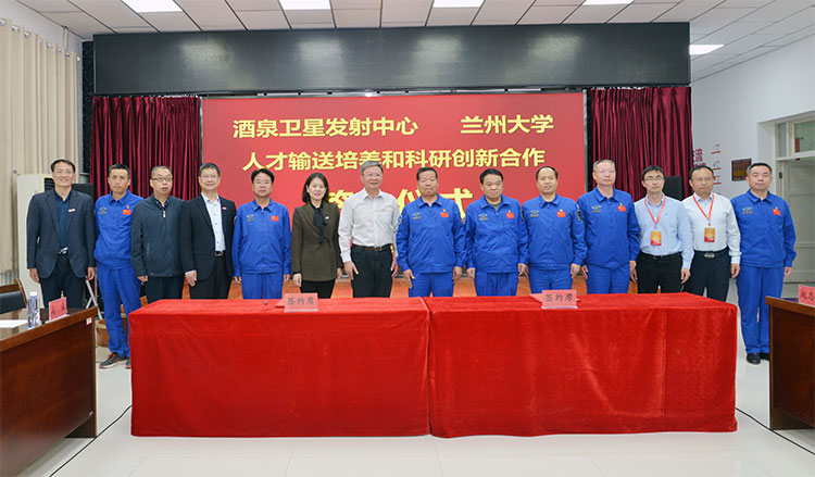 5月30日,兰州大学校长严纯华一行赴酒泉卫星发射中心推进合作,签署校地人才培养和科研创新合作协议。酒泉卫星发射中心党委书记姜汉民、副主任路春福、总工程师郑永煌、安全部主任刘惠斌,中国科学院院士、兰州大学校长严纯华,副校长曹红出席签约仪式。