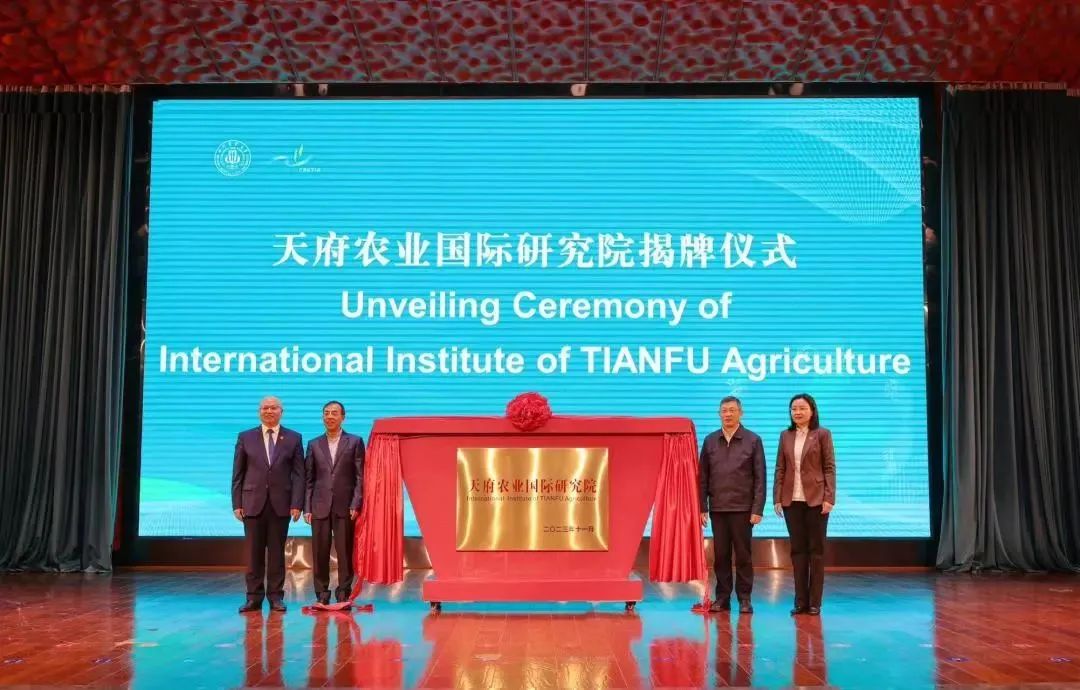 会上还举行了“天府农业国际研究院”揭牌仪式。该研究院总投入经费2亿元,将聚焦更高水平天府粮仓建设组建8~10支科研团队,团队实行首席科学家负责制。研究院将建设“人才特区、科研特区、研究生培养特区”三个特区,实现“原始创新成果突破、师资队伍建设突破、卓越人才培养突破、管理运行机制突破”四个突破,为学校“双一流”建设提供重要的人才保障和强大科技支撑,强力推动农业现代化发展。