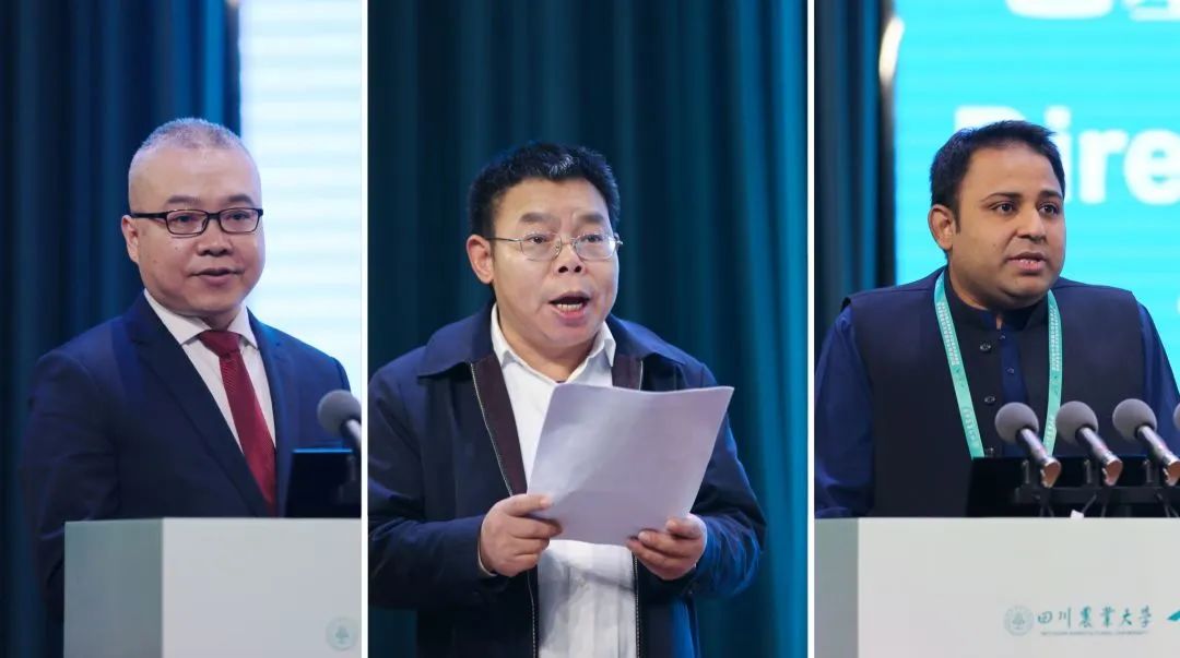 会议现场举行了“粮食安全”教育科技创新联盟成立仪式。该联盟由四川农业大学牵头组建,首批包括阿根廷布宜诺斯艾利斯大学、希腊帕特雷大学、浙江大学、西北农林科技大学、成都粮食集团等27家单位,将聚焦“作物丰粮、养殖节粮、果蔬补粮、加工促粮、增收稳粮”等关键核心技术领域,通过搭建交流合作平台,推动联盟成员间在农业科技创新、人才培养、政策研究、技术推广、社会服务等方面以优势互补、以强带弱的形式,以点带面、从线到片地在粮食安全领域的深度合作,共护粮食安全、共促绿色可持续发展,凝聚智慧提高全球农业治理的参与度与贡献度。