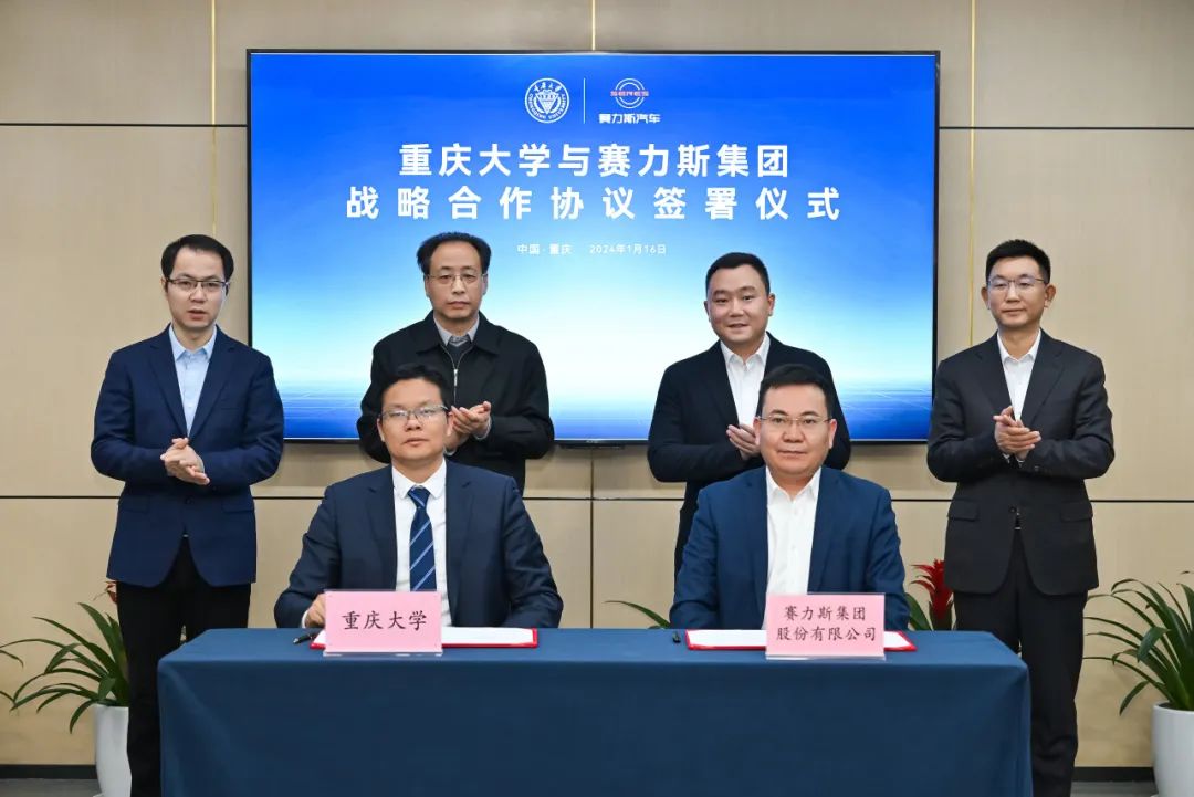 1月16日,重庆大学与赛力斯集团在重庆签署战略合作协议。重庆大学校长、中国工程院院士王树新,重庆大学副校长李剑,赛力斯集团轮值总裁张正萍,赛力斯汽车 aito 问界bu 总裁何利扬等出席并见证签约仪式。重庆大学科发院院长曹华军、赛力斯汽车战略规划部总监张有洪分别代表双方签署战略合作协议。