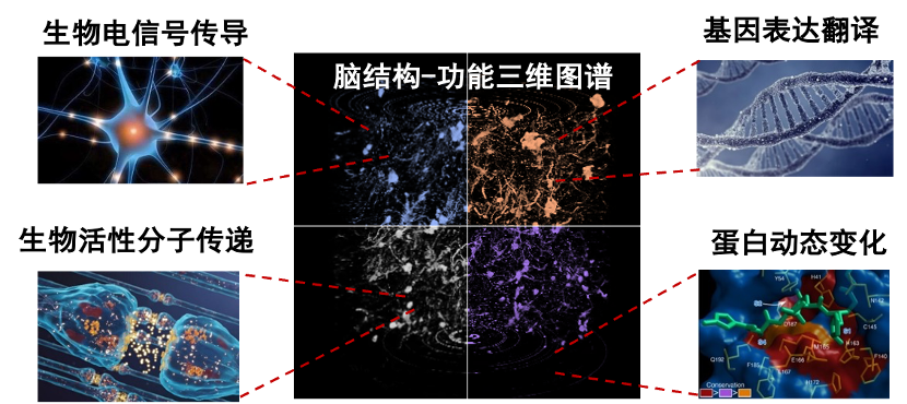 此次获批的重大项目针对脑海马区分子时空图谱绘制中存在的关键科学问题,依托上海同步辐射大光源,发展分辨率高、穿透深、速度快的x-射线成像技术,实现脑海马区介观结构成像。同时发展高灵敏、高通量蛋白质的筛选与精准解析技术,发现与筛选与阿尔兹海默症相关的关键蛋白与功能小分子;针对这些靶标蛋白和神经递质等活性小分子,设计合成可以特异性快速识别靶标分子的多色成像探针,发展细胞、组织、活体等跨尺度多通道高时空分辨成像新方法,同时获取细胞内外的神经递质、蛋白质等化学分子随阿尔兹海默症发生、发展的变化信息,获取不同的光、电参数信息进行可视化动态模拟成像。最后,基于人工智能和大数据处理方法,发展图像融合技术和图像算法,将海马区的x-射线结构图谱和功能分子空间分布图谱进行融合,获得脑海马区分子时空图谱。