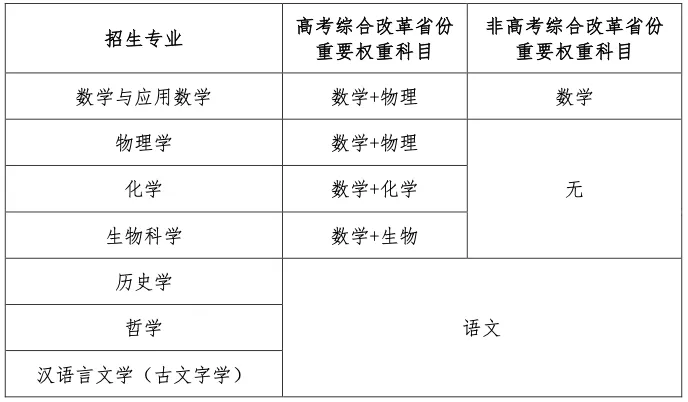 注:所有考生只能填报一个专业志愿。第二类考生只能报考获奖学科对应的招生专业(其中信息学奥林匹克竞赛对应数学与应用数学专业或物理学专业)。