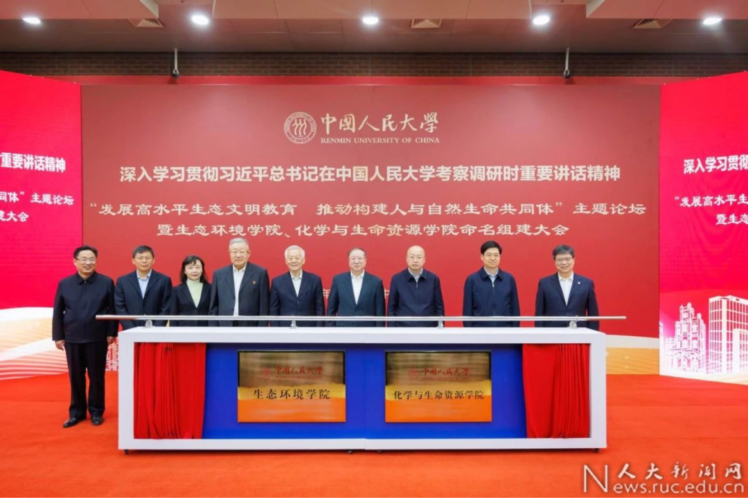 4月20日,中国人民大学举办“发展高水平生态文明教育,推动构建人与自然生命共同体”主题论坛暨生态环境学院、化学与生命资源学院命名组建大会。