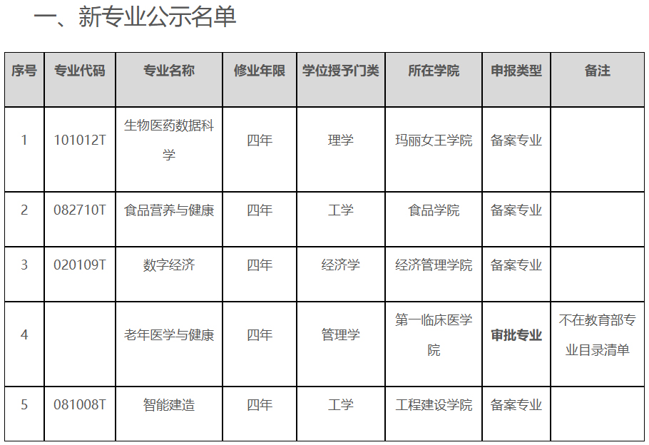经学院申报、学校组织专家审议、学校校长办公会议审定,同意申报生物医药数据科学等5个新专业、网络空间安全等6个第二学士学位专业。