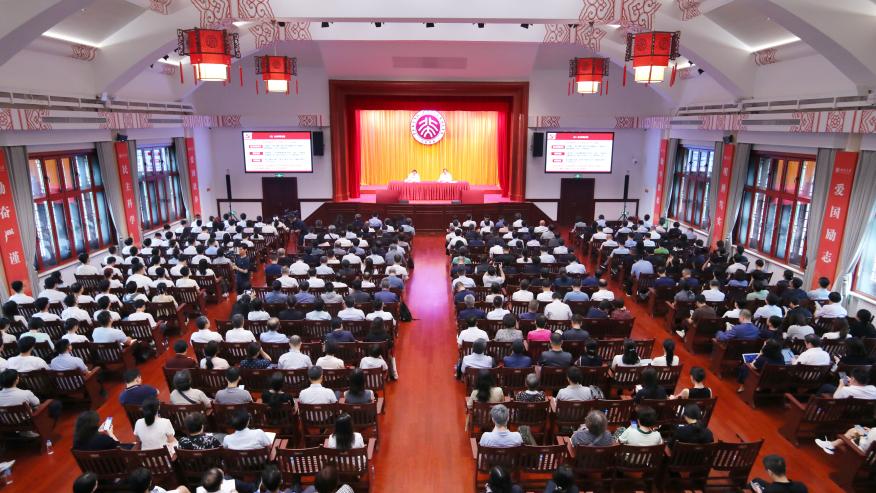 8月15日上午,北京大学在办公楼礼堂召开学习贯彻党的二十届三中全会精神宣讲会。市委宣讲团成员、二十届中央候补委员、校长龚旗煌宣讲党的二十届三中全会精神,校党委书记郝平主持宣讲会并作工作部署。学校党政领导班子成员,学校党委委员、纪委委员,校务委员会副主任、副秘书长、副教务长、总法律顾问,各学部主任、副主任、医学部领导班子成员,全体在职院士、文科一级教授,学校第十四次党代会代表,全校中层正职干部、独立实体研究机构负责人,全国和北京市人大代表、政协委员,民主党派校级组织和侨联负责人,以及老同志代表、学生代表约400人参会。