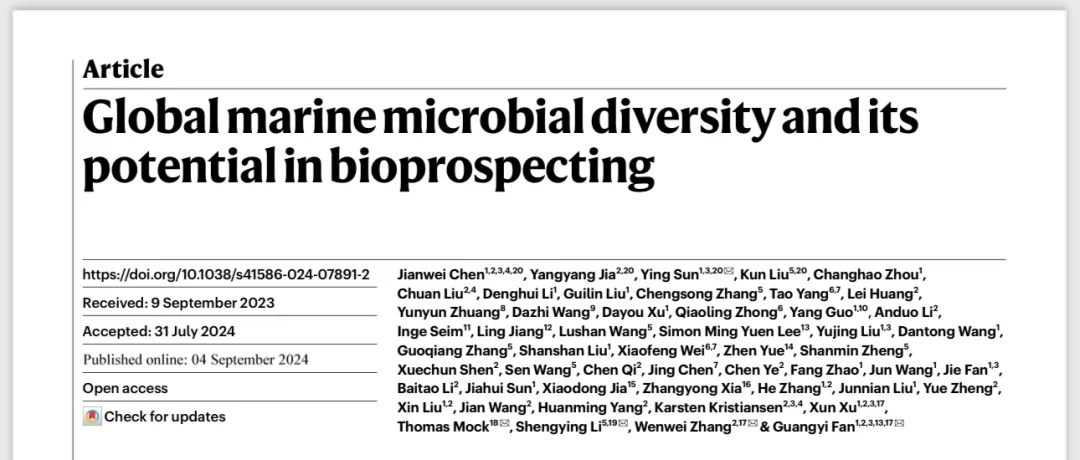 9月4日,国际顶级期刊《自然》(nature)在线发表中外科学家的合作成果“ global marine microbial diversity and its potential in bioprospecting ”。该成果建立了全球最大的海洋微生物组数据库,从中发掘塑料降解酶、基因编辑工具、抗菌肽等重要基因资源。山东大学微生物技术国家重点实验室教授李盛英为文章共同通讯作者,助理研究员刘琨为文章共同第一作者。