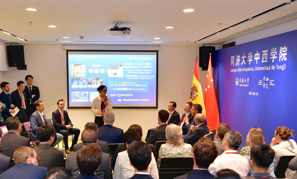 会上,西班牙马德里理工大学驻同济大学代表夏伟简要介绍了同济大学中西学院概况,马德里理工大学访问雇员巴勃罗·拉巴丹简要介绍了西济孵化器的设立初衷和扶持西班牙留学生创新创业情况。3名中国和西班牙青年创业者——同济大学环境科学与工程学院硕士研究生白芷瑜、2024春季学期马德里理工大学来同济交流生圣地亚哥·罗德里戈、受西济孵化器吸引而来的创业者西达塔·利兹卡诺阿比纳,分别介绍了各自的创业项目。