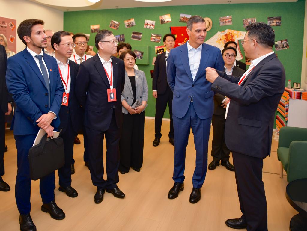 “水资源短缺是当前全球面临的共同挑战,如果你们能精进创业项目,也许未来我们会成为你们初创公司的潜在客户。”听完青年创业者的介绍,桑切斯首相表现出浓厚兴趣,他还与创业学生展开了深入交流,并笑着说道,“请把你们的名片给我。”