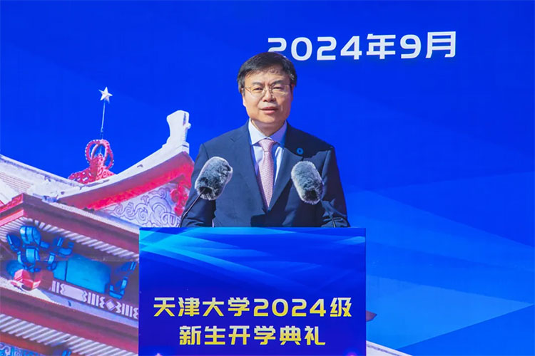 9月12日,天津大学2024级新生开学典礼举行。中国工程院院士、天津大学校长金东寒与全体2024级新生展望未来,分享对于“认识你自己”的思考。