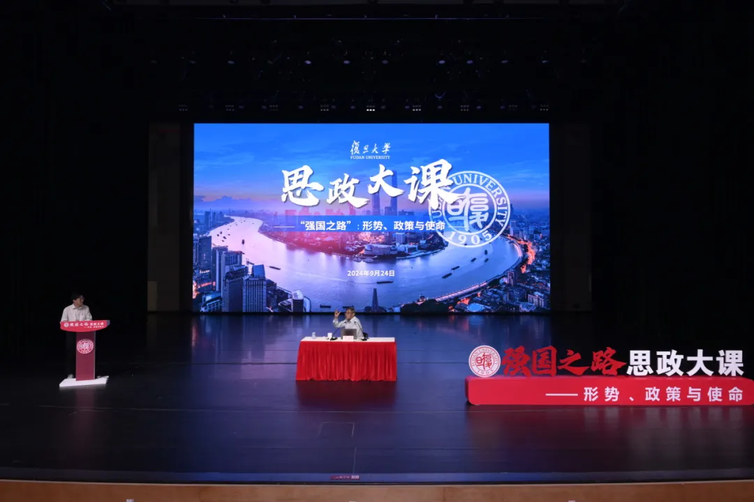 9月24日下午,在相辉堂北堂,全国教学名师、复旦大学经济学教授、复旦大学就业与社会保障研究中心主任袁志刚开讲“强国之路”思政大课文科大类首场专题大课。