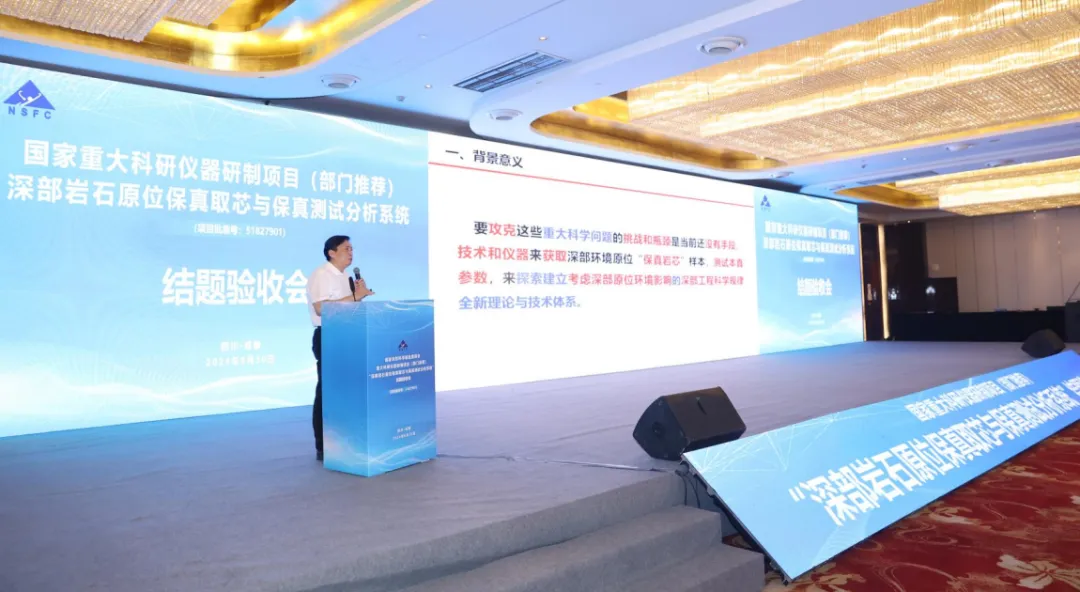 近日,由四川大学谢和平院士团队承担的国家重大科研仪器研制项目(部门推荐)“深部岩石原位保真取芯与保真测试分析系统”(批准号:51827901)结题验收会在成都召开。国家自然科学基金委员会工程与材料科学部常务副主任王岐东、副主任苗鸿雁、赖一楠,教育部科技司相关人员,项目验收专家组,项目监理组,四川大学校长汪劲松,副校长刘超,科研院、水利水电学院相关负责人,项目负责人谢和平院士及项目组成员等100余人参加了验收会。验收会由苗鸿雁主持。