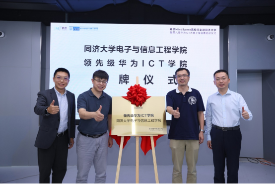 2024年9月27日,昇思mindspore高校行走进同济大学暨第九届华为ict大赛上海市赛启动仪式在同济大学四平路校区顺利举办。活动中,同济大学电子与信息工程学院与华为技术有限公司共建“领先级华为ict学院”正式揭牌。华为技术有限公司中国区产业发展与生态部副部长王新、中国区人才发展业务校企合作总监褚力行、华为ict学院合作总监魏彪、华为上海ict学院合作总监翟彦杰等一行参与授牌,同济大学电子与信息工程学院副院长周俊鹤、副教授齐鹏共同参加授牌仪式。