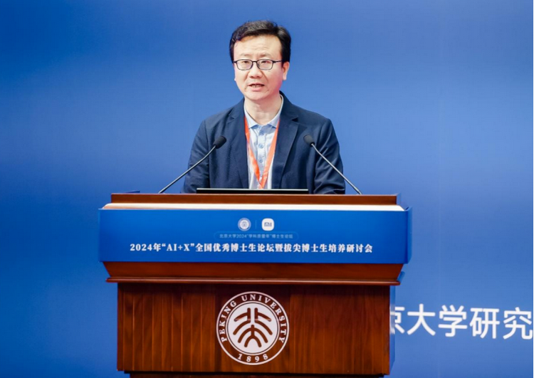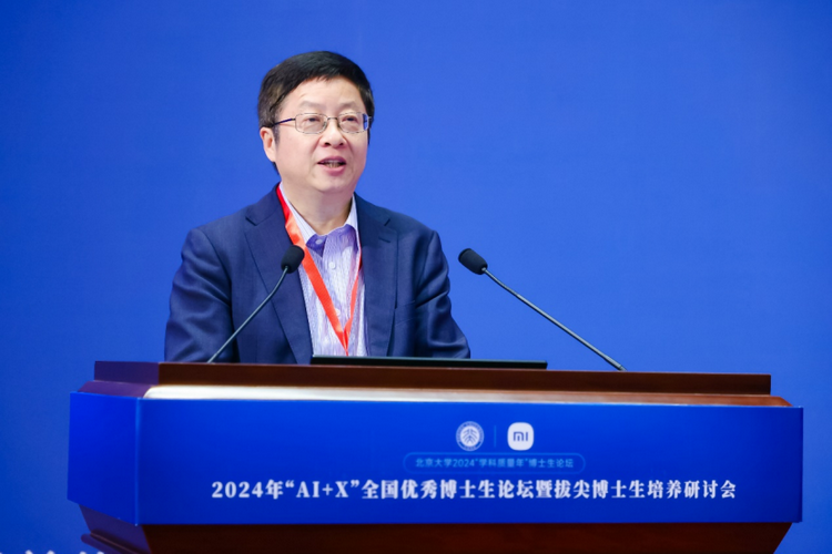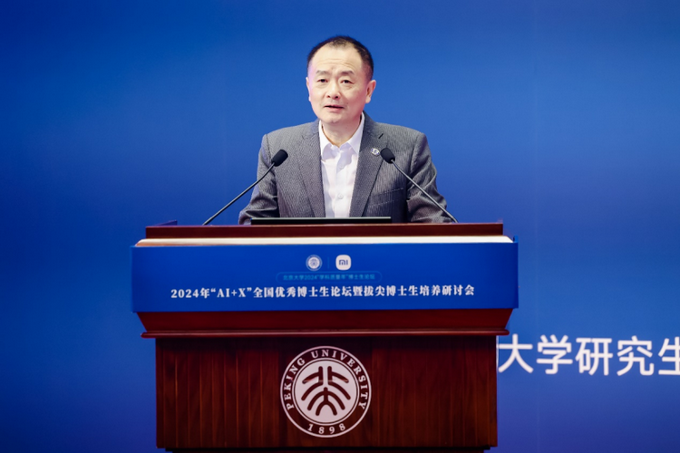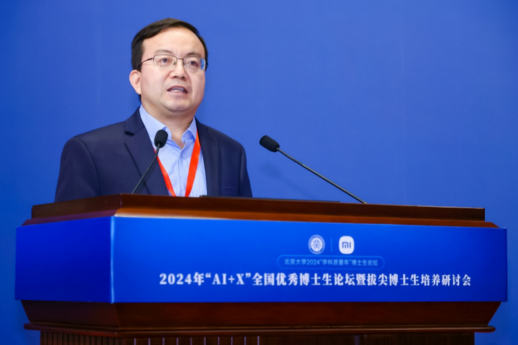 2024年9月28日,2024年“ai x”全国优秀博士生论坛暨拔尖博士生培养研讨会在北京大学英杰交流中心举行。此次论坛由北京大学研究生院指导,北京大学计算机学院主办,联合智能学院等相关院系共同组织实施。中国科学院院士、北京大学计算机学院梅宏教授、北京大学研究生院常务副院长陈鹏教授、计算机学院院长胡振江教授、小米集团ai实验室主任、nlp首席科学家王斌博士等领导嘉宾出席会议,全国10余所国内拔尖高校师生代表以及校内各相关单位领导和老师共同参会。此次论坛共设1个主论坛和5个分论坛,涵盖了计算机和人工智能与多个学科的交叉融合,线上与线下有近两万名专家学者和师生参与其中。上午主论坛分别由北京大学计算机学院副院长郭耀教授和副院长崔斌教授主持。