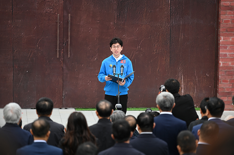 中国科学院大学学生代表潘忆遥分享了自己担任纪念馆学生讲解员的经历和体会,表示要从“两弹一星”精神和先辈们的事迹中不断汲取前进的力量,勇担使命、善于作为,敢于挑战未知,为科技强国建设添砖加瓦。