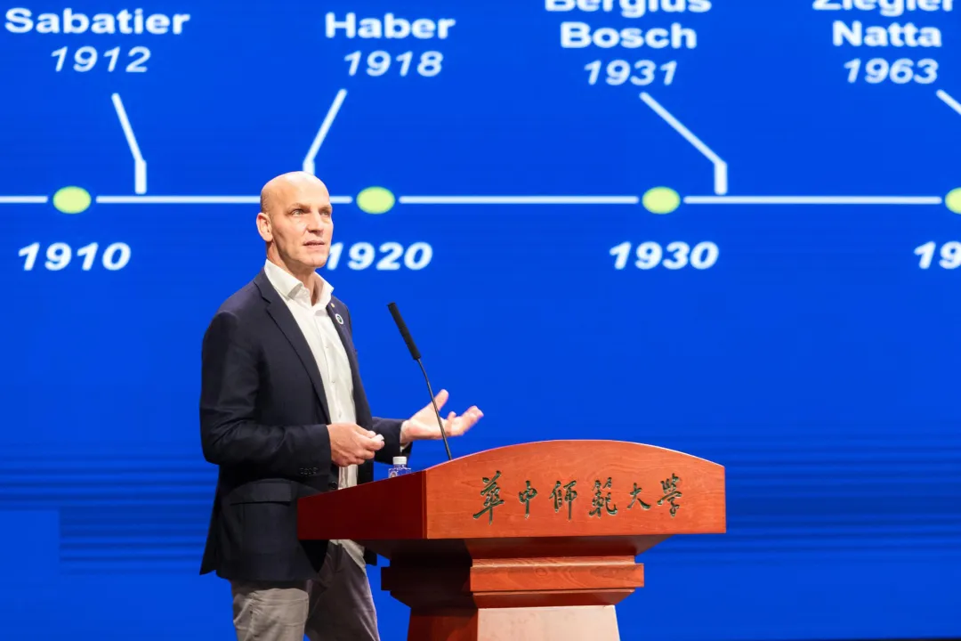 10月15日,诺贝尔化学奖获得者、德国科学院院士本杰明·李斯特教授到访华中师范大学,受聘该校名誉教授,正式成为学校学术共同体重要一员。华中师范大学党委书记夏立新为本杰明·李斯特教授颁发了名誉教授聘书并致辞。相关职能部门、化学学院负责人以及来自全校各院系的师生代表参加。仪式由副校长任友洲主持。