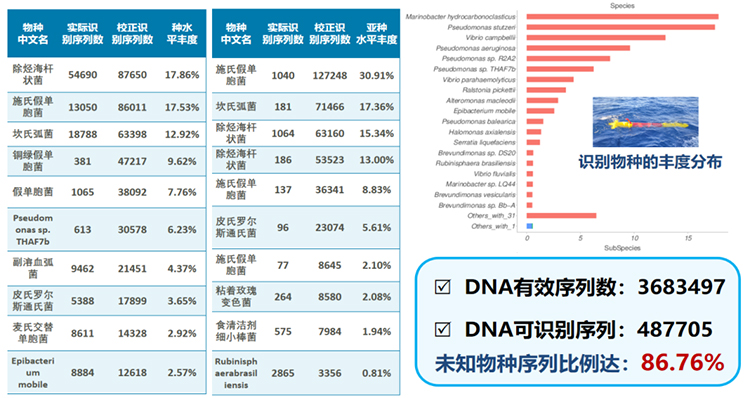 部分样本基因测序及物种分析结果