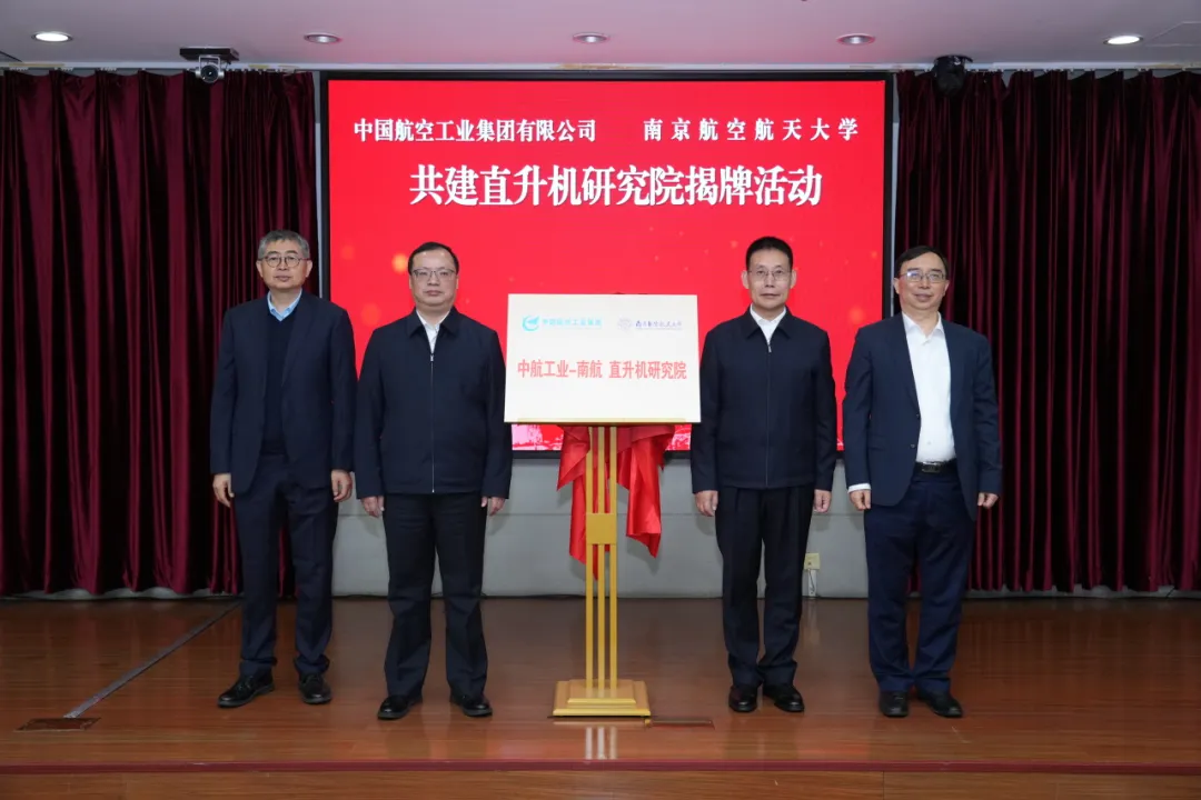 南京航空航天大学校长姜斌表示,航空产业是经济高质量发展的战略性关键性产业,对培育发展新质生产力和加快推进新型工业化有着重要支撑作用。中国航空工业集团与南航共建直升机研究院是双方贯彻落实习近平总书记在考察昌飞时重要指示精神的具体举措,也是深化彼此战略合作关系、携手推动高质量发展的有力行动。希望双方以直升机研究院为纽带,充分发挥各自优势,进一步强化航空科技创新和高层次人才培养,着力打造“平台共创、项目共担、人才共育、成果共享、行业共促”的校企合作新典范,携手为航空强国建设贡献更多智慧和力量。