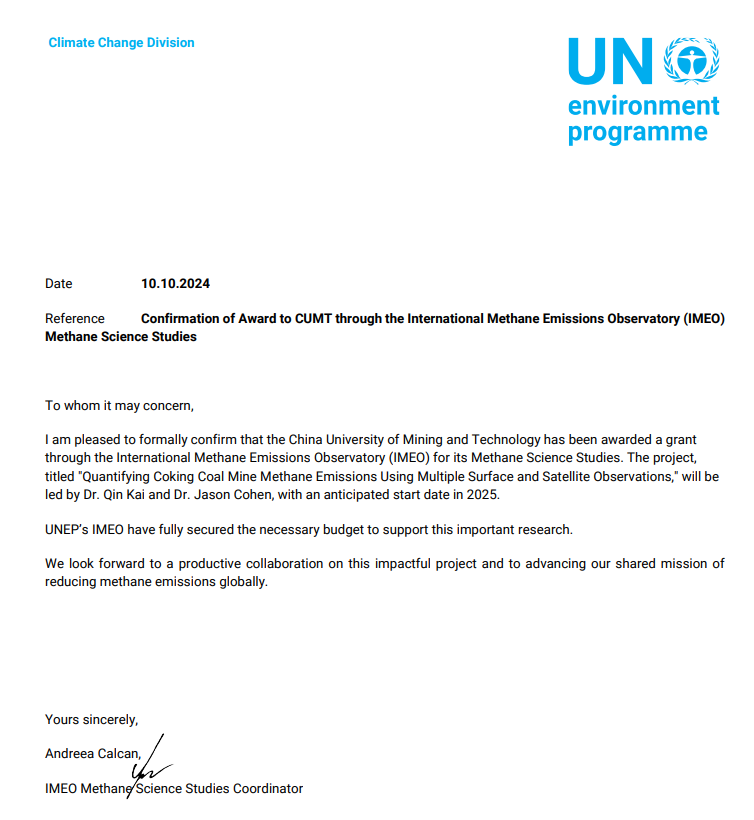 近期,中国矿业大学教师获批联合国环境规划署(unep)甲烷科学研究项目,环境与测绘学院jason cohen教授和秦凯教授为该项目负责人。该项目名称为“quantifying coking coal mine methane emissions using multiple surface and satellite observations”(利用多种地面和卫星观测数据量化焦化煤矿甲烷排放量),旨在运用卫星遥感和地面观测技术客观科学地核算煤炭行业甲烷排放。项目申请资助金额为69万美元,资助期限为2年半。