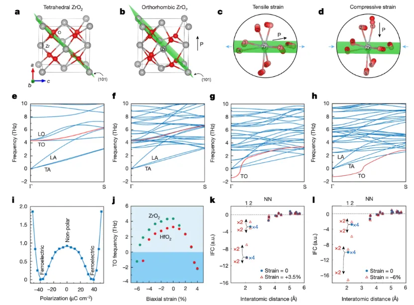 氧化物高k介电常数和铁电相变一个重要因素是光学声子软化。通常认为,光学声子软化来自强born有效电荷引起的长程库伦相互作用和弱的原子化学键,极化效应导致材料的介电常数与带隙通常成反比,难以同时拥有高介电常数和大带隙。此外,铁电材料受限于强born有效电荷引起的界面退极化效应,使其难以应用于大规模集成的纳米尺度器件。