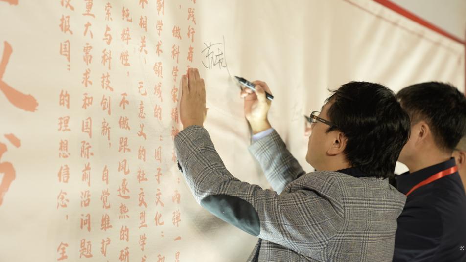 苏杭等青年科学家代表在倡议书上签名。戚金葆摄