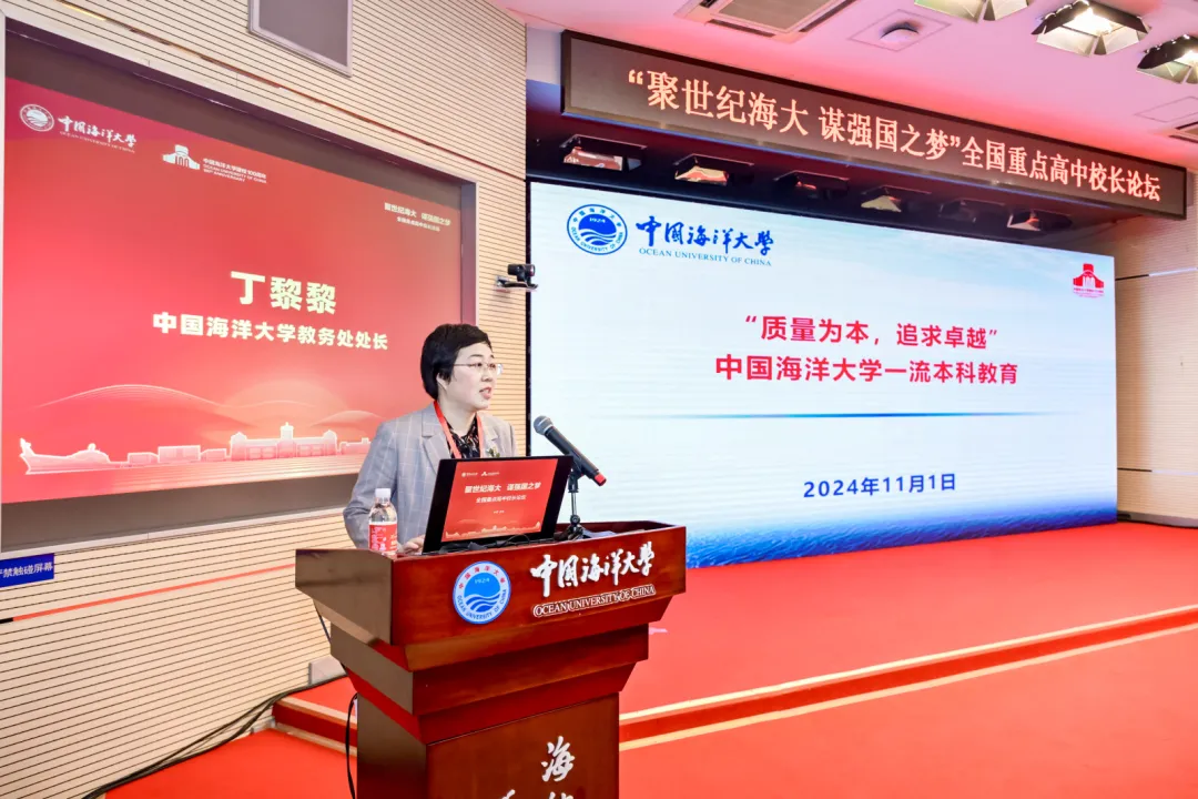 中国海洋大学教务处处长丁黎黎以《“质量为本,追求卓越”中国海洋大学一流本科教育》为题作报告。报告围绕一流本科人才培养体系,对学校一流的培养理念、一流的教学要素、一流的质量保障,特别是一流的海洋拔尖人才培养矩阵等进行了全面介绍。丁黎黎同与会代表一起认真学习了习近平总书记给中国海洋大学全体师生重要回信精神。她表示,习近平总书记的重要回信对新时代人才培养工作提出了殷切期待,站在建校百年的新起点上,学校将持续深耕“一流本科建设”,进一步构筑人才培养的海大模式,努力培养更多胸怀蓝色梦想、堪当时代重任的优秀海洋人才,为建设教育强国、海洋强国作出更大贡献。