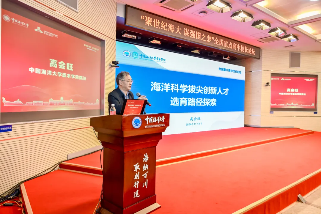中国海洋大学崇本学院院长高会旺为大会带来了题为《海洋科学拔尖创新人才选育路径探索》的专题报告。全面阐述了崇本学院如何紧密围绕国家海洋战略和科技发展的迫切需要,在海洋科学领域拔尖人才的“选”和“育”两个方面,所开展的一系列科学探索、顶层规划以及取得的显著成就。他表示,崇本学院将矢志不渝地在基础教育与高等教育融合贯通、共同培育拔尖创新人才的实践中持续深耕、不断开拓,致力于引领我国海洋高等教育的创新发展潮流,以实际行动和卓越成果,奋力书写“强国建设,高校何为”的海大答卷。