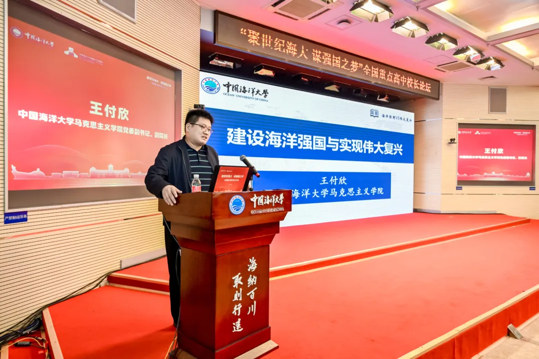 中国海洋大学马克思主义学院党委副书记、副院长王付欣以《建设海洋强国与实现伟大复兴》为题作报告。报告以史为线、深入浅出,聚焦党的十八大以来,党中央对海洋强国建设的重视,特别是结合习近平总书记考察崂山实验室、中国海洋大学三亚海洋研究院重要讲话精神,以及习近平总书记给中国海洋大学全体师生重要回信精神,全面论述了建设海洋强国是实现中华民族伟大复兴的重大战略任务,并着重强调,要深刻理解把握加快建设海洋强国,是中国式现代化的必然选择,必须心怀“国之大者”,奋力推进海洋强国建设伟大进程。
