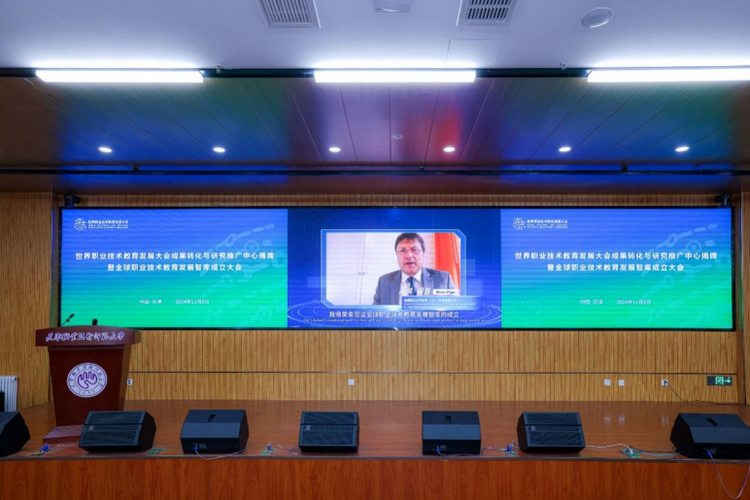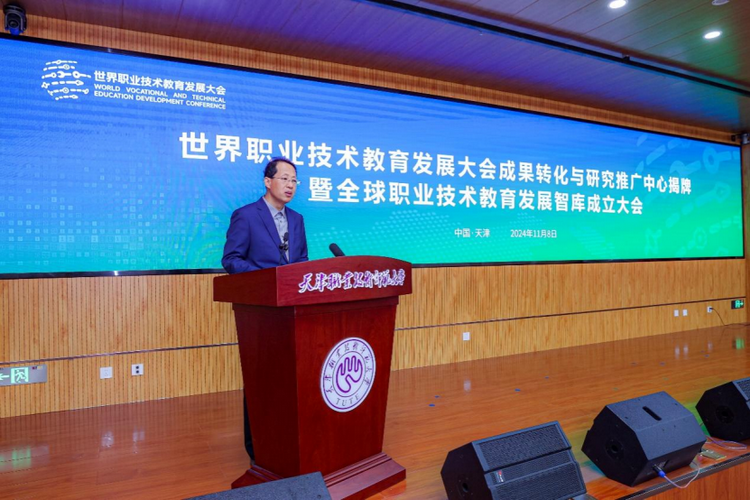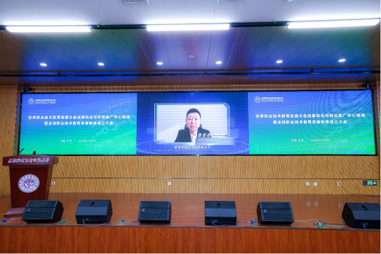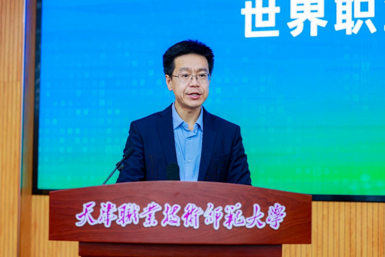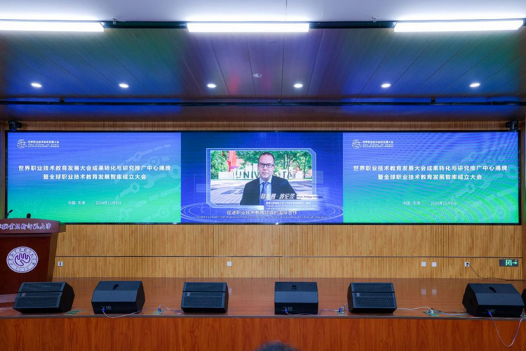 天津职业技术师范大学党委副书记、校长郑清春向与会嘉宾介绍世界职业技术教育发展大会成果转化与研究推广中心的筹建情况,他就自首届世界职业技术教育发展大会召开以来,中心在重大成果、汇聚众智、创办职业教育国际期刊等方面的最新进展进行介绍。他指出,天职师大积极回应教育部和天津市人民政府《关于探索现代职业教育体系建设改革新模式实施方案》要求,全力打造研推中心、全球智库和国际期刊三位一体的职业教育国际发展平台,赋能全球职业技术教育互学互鉴、共建共享,助力天津建设世界职业教育国际交往中心。