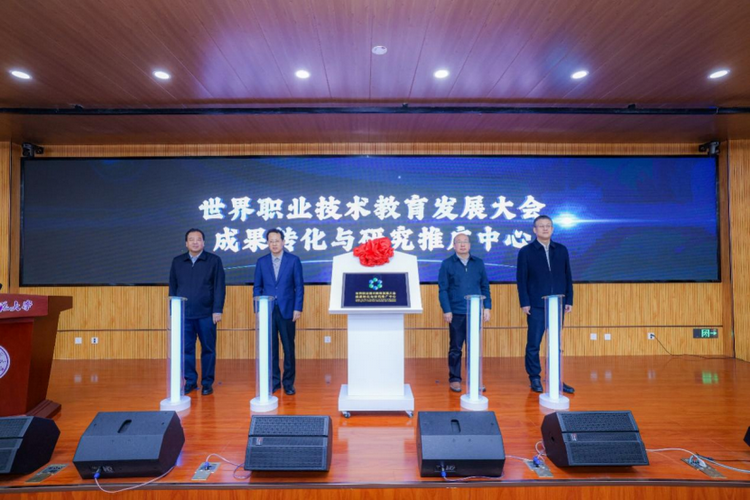 之后,李剑萍、罗延安、张金刚、郑清春共同为世界职业技术教育发展大会成果转化与研究推广中心隆重揭牌。