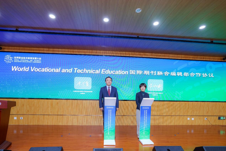 天津职业技术师范大职业教育学院院长米靖和外语教学与研究出版社职教分社社长李淑静共同签署world vocational and technical education(《世界职业技术教育》)国际期刊联合编辑部合作协议。