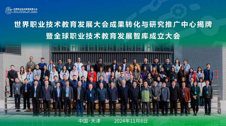 11月8日,天津职业技术师范大学成功主办世界职业技术教育发展大会成果转化与研究推广中心揭牌暨全球职业技术教育发展智库成立大会。天津市政协副主席、天津市教育科学研究院院长李剑萍,原中国常驻联合国教科文组织大使衔代表杨进,天津市教育委员会副主任罗延安,北京师范大学教育学部教授、天津职业技术师范大学名誉教授俞启定,中国教育在线董事长刘玉明以及来自教育部、天津市教育委员会、北京师范大学、天津大学、南开大学、北京外国语大学、天津职业技术师范大学、天津市教育科学研究院、外语教学与研究出版社和中国教育在线的领导和专家学者等100余人出席本次活动。会议由天津市教育委员会职教处处长李力主持。