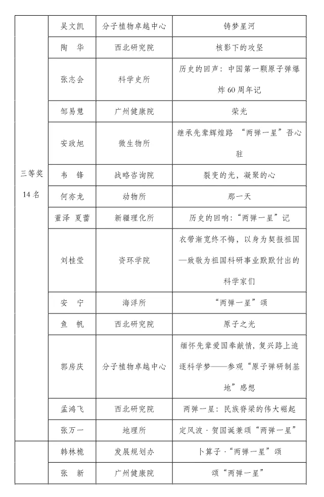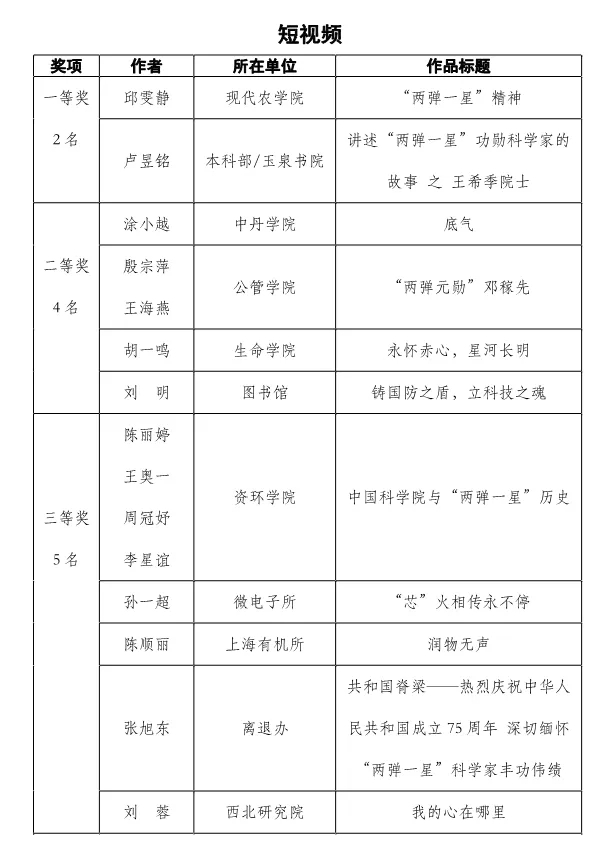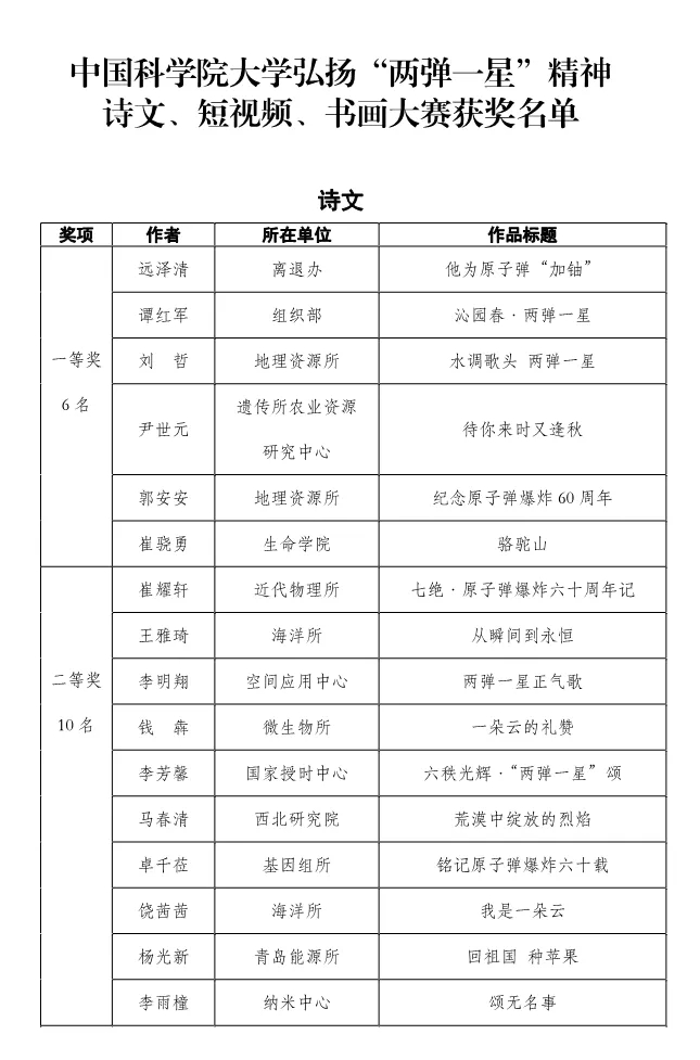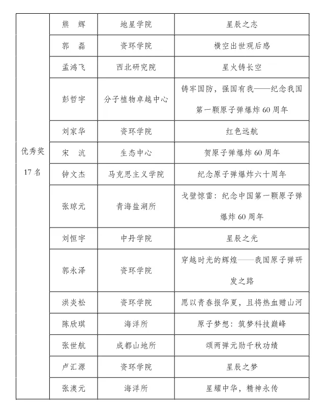 国科大弘扬“两弹一星”精神作品大赛获奖名单