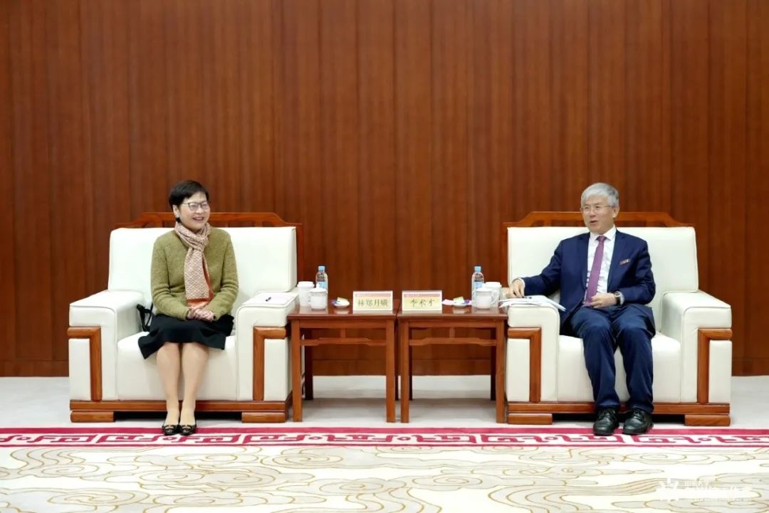 11月18日,香港特别行政区第五任行政长官林郑月娥访问山东大学并作主旨演讲。校长李术才在青岛校区会见林郑月娥。