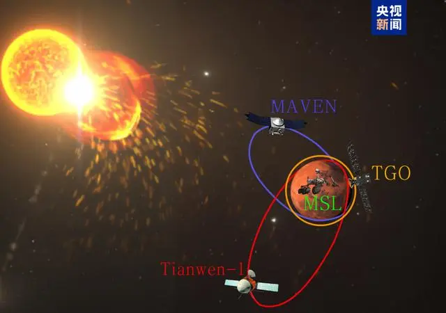 △图示:2022年2月15日太阳高能粒子事件同时被中国的天问一号轨道器(tianwen-1)、欧州航天局的微量气体轨道飞行器(tgo)、美国航空航天局的火星大气和挥发性演化轨道器(maven)以及火星表面的好奇号火星车(msl)探测到。