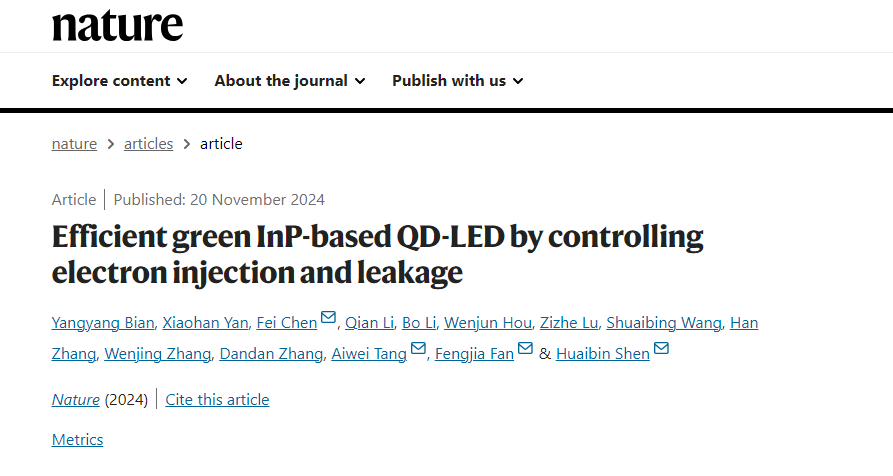 11月21日,河南大学申怀彬教授团队在量子点领域的研究成果以“efficient green inp-based qd-led by controlling electron injection and leakage”为题,在国际顶级期刊《自然》发表标志着无毒量子点led技术取得重要进展,这是河南大学首次作为第一通讯单位在《自然》期刊发表研究成果。