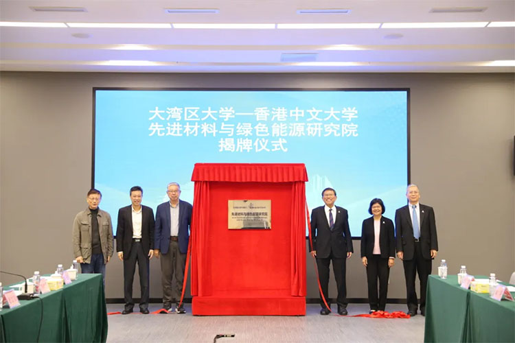 2024年11月26日,大湾区大学—香港中文大学先进材料与绿色能源研究院揭牌仪式在大湾区大学松山湖校区实验楼举行。香港中文大学校长段崇智、副校长岑美霞、研究院院长宋春山以及其他研究院教师、学生代表;大湾区大学校长田刚、大湾区高等研究院副院长夏志宏、教学负责人李晓明、行政负责人戴长亮、各部门负责人以及教师代表参加了仪式。东莞市政府副秘书长冯彬、市大学筹建办谭彦贞副主任出席见证。揭牌仪式由大湾区大学教学负责人李晓明主持。