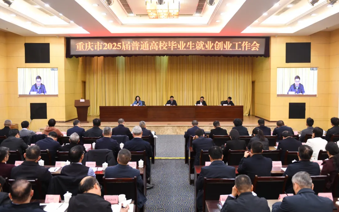 12月4日,重庆市教委、市人力社保局召开2025届高校毕业生就业创业工作会议。会议以习近平新时代中国特色社会主义思想为指导,深入贯彻落实全国、全市教育大会和教育部就业工作会议精神,总结工作,分析形势,安排部署本市2025届高校毕业生就业创业工作。市委教育工委书记、市教委主任刘宴兵,市人力社保局党组成员、副局长夏杨松出席会议并讲话。市委教育工委委员、市教委副主任蒋云芳主持会议。